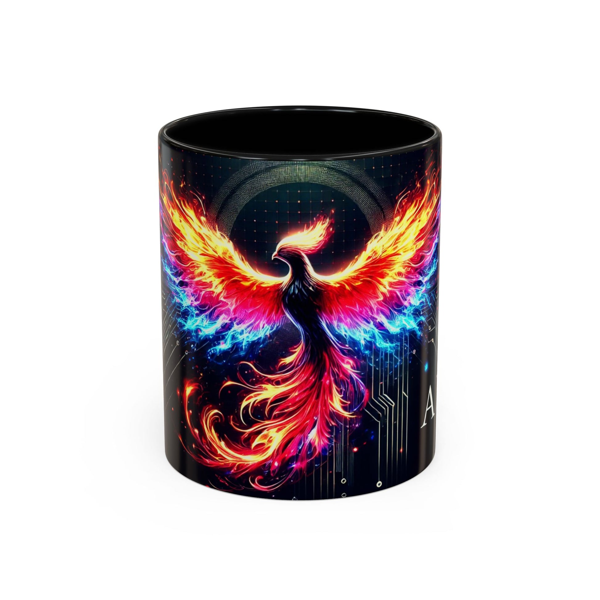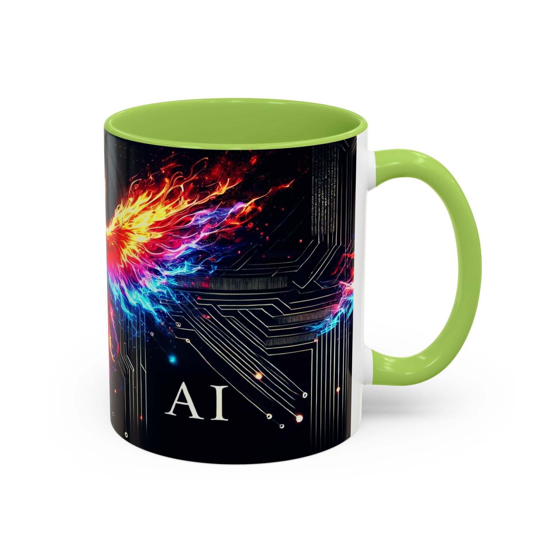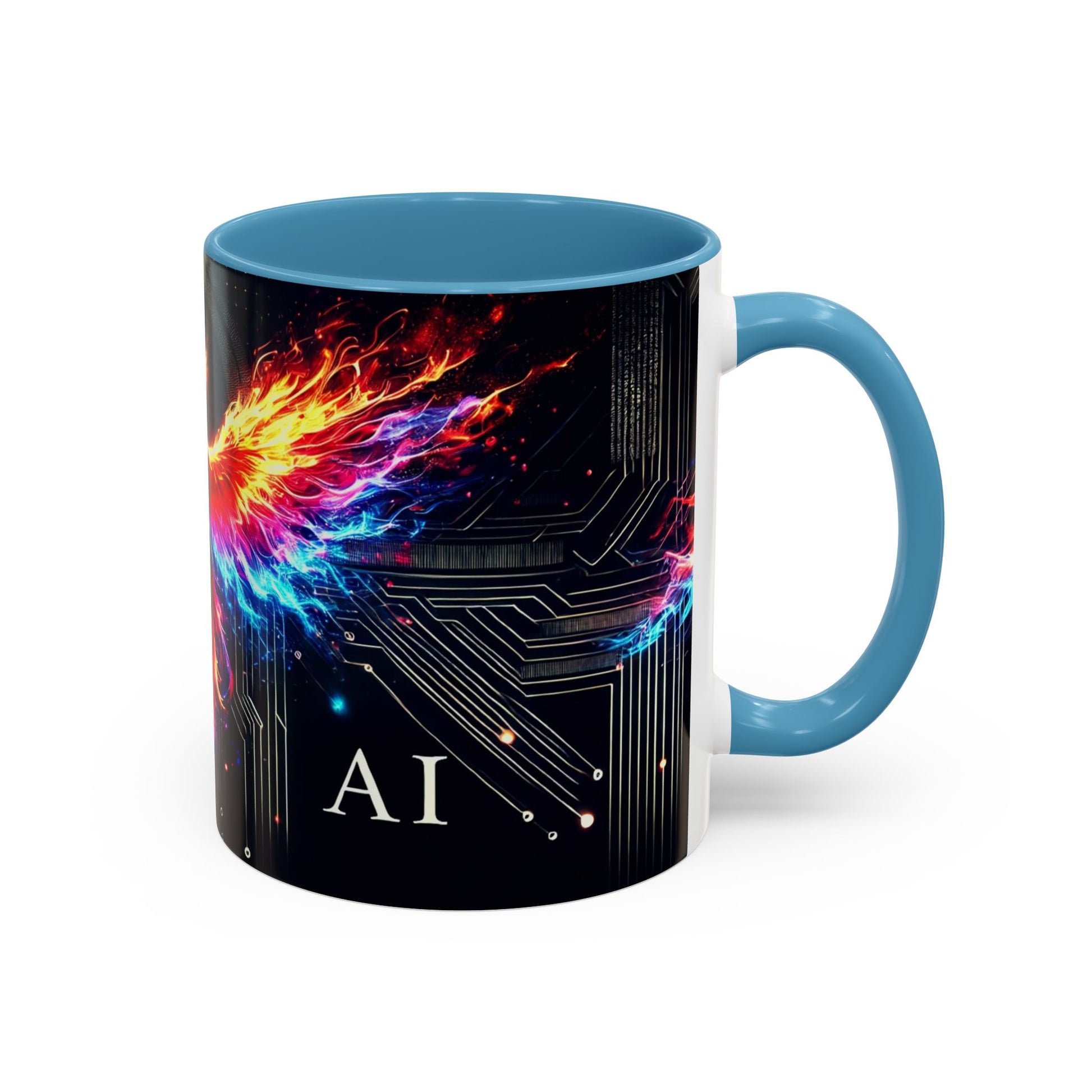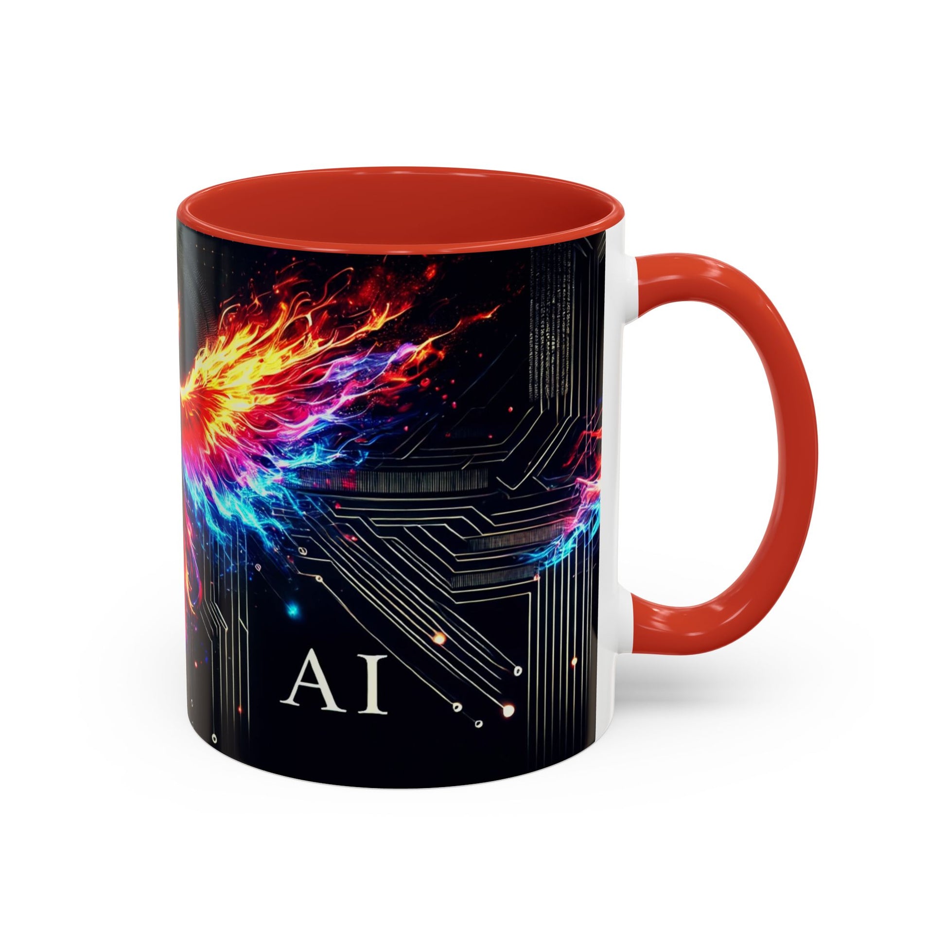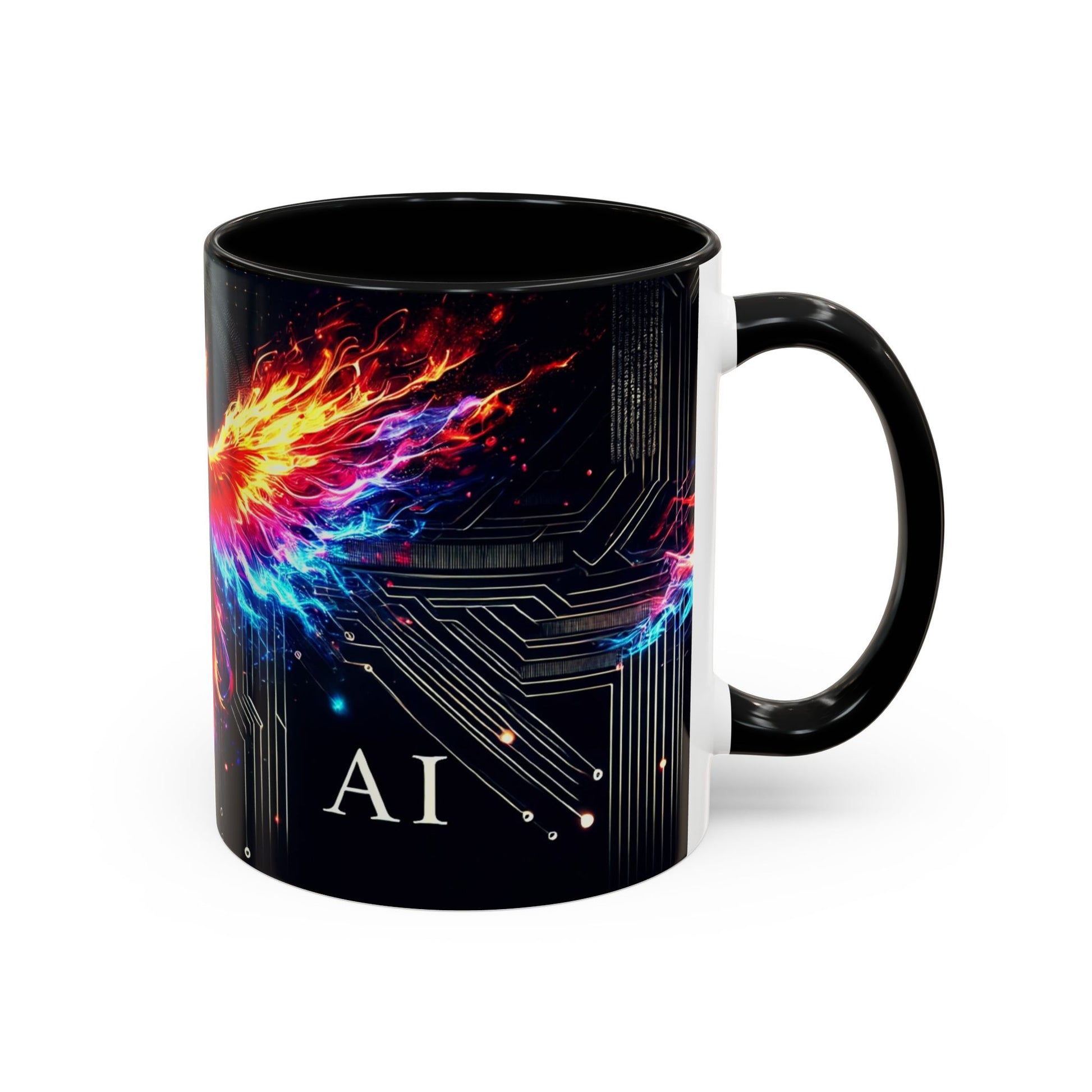 Phoenix AI Accent Coffee Mug - Colorful Artistic Design for Tech Lovers